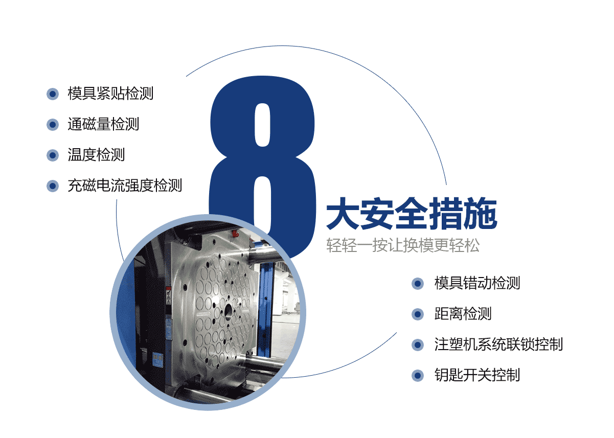 株洲悍威磁電科技有限公司(簡(jiǎn)稱(chēng)“悍威磁電”)是中國(guó)電永磁行業(yè)領(lǐng)軍品牌,專(zhuān)注于研發(fā)與生產(chǎn)各種注塑機(jī)快速換模系統(tǒng)、壓鑄機(jī)快速換模裝備,沖床磁力換模系統(tǒng),自動(dòng)化磁力換模系統(tǒng)等,擁有豐富的磁力快速換模成功案例。8年潛心鉆研先后獲得5項(xiàng)發(fā)明專(zhuān)利,29項(xiàng)實(shí)用新型專(zhuān)利,研發(fā)的電永磁力換模系統(tǒng),具有“安全、節(jié)能、高效、環(huán)保”等獨(dú)特優(yōu)勢(shì),適用廣泛,遠(yuǎn)銷(xiāo)海外成為全球值得信賴(lài)的工業(yè)磁性設(shè)備供應(yīng)商之一。